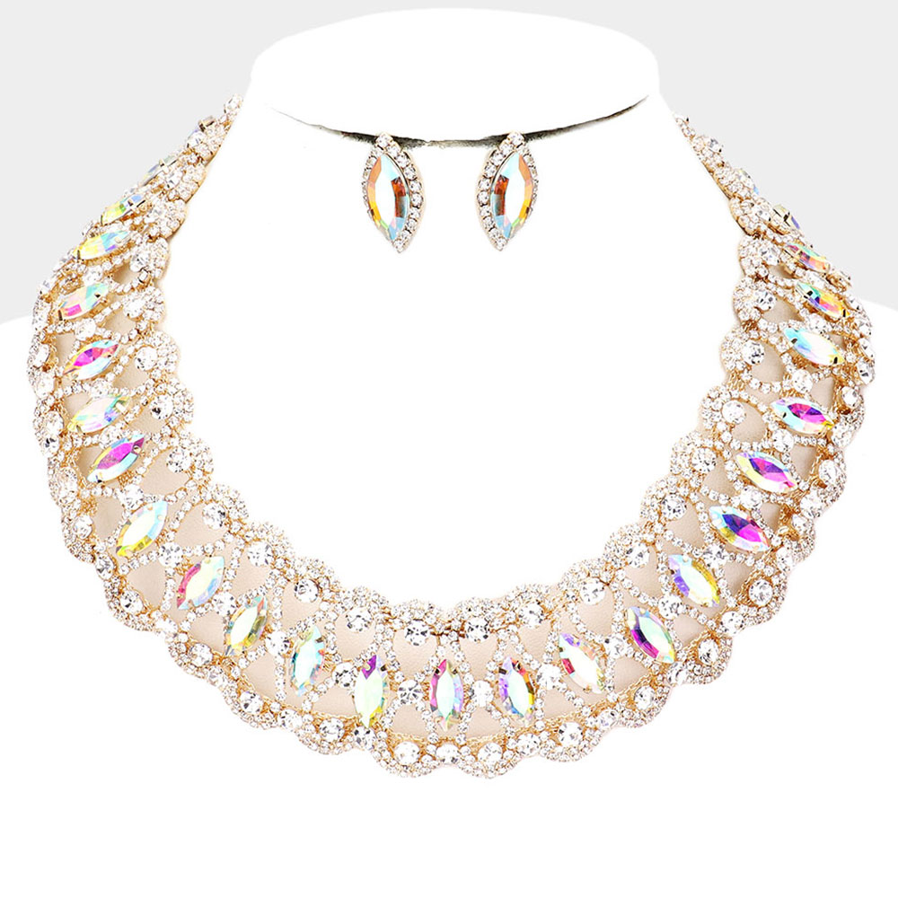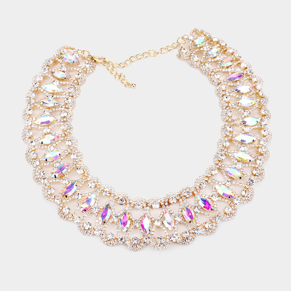 Teardrop Stone Cluster Accent Elegant Butterfly Rhinestone Necklace