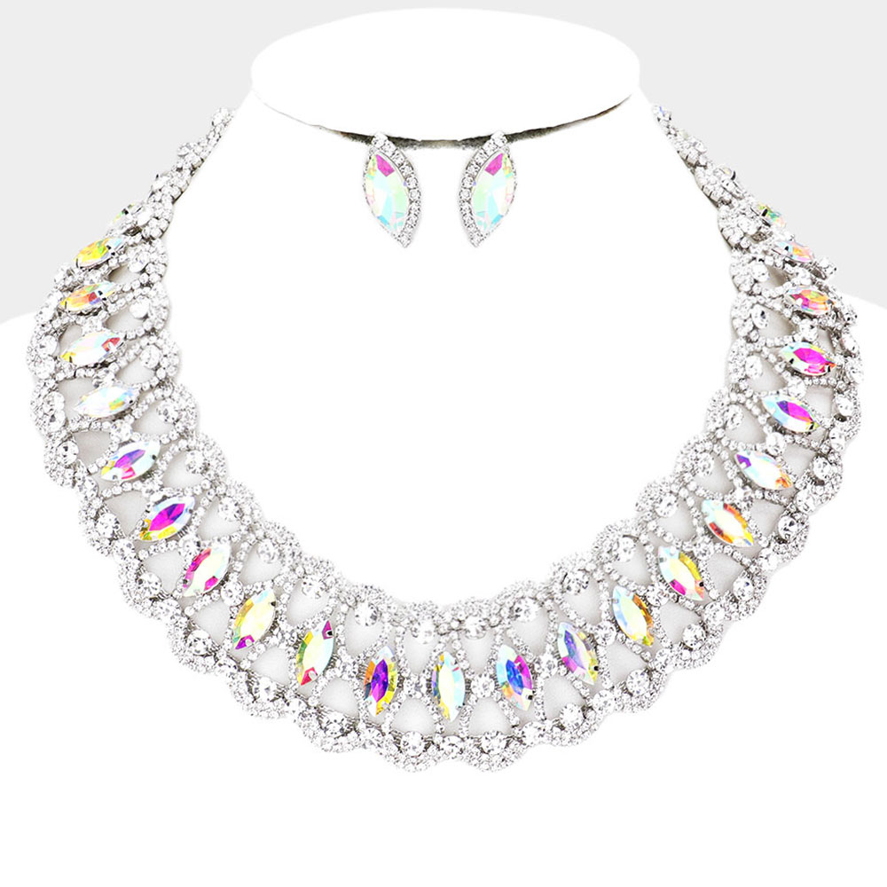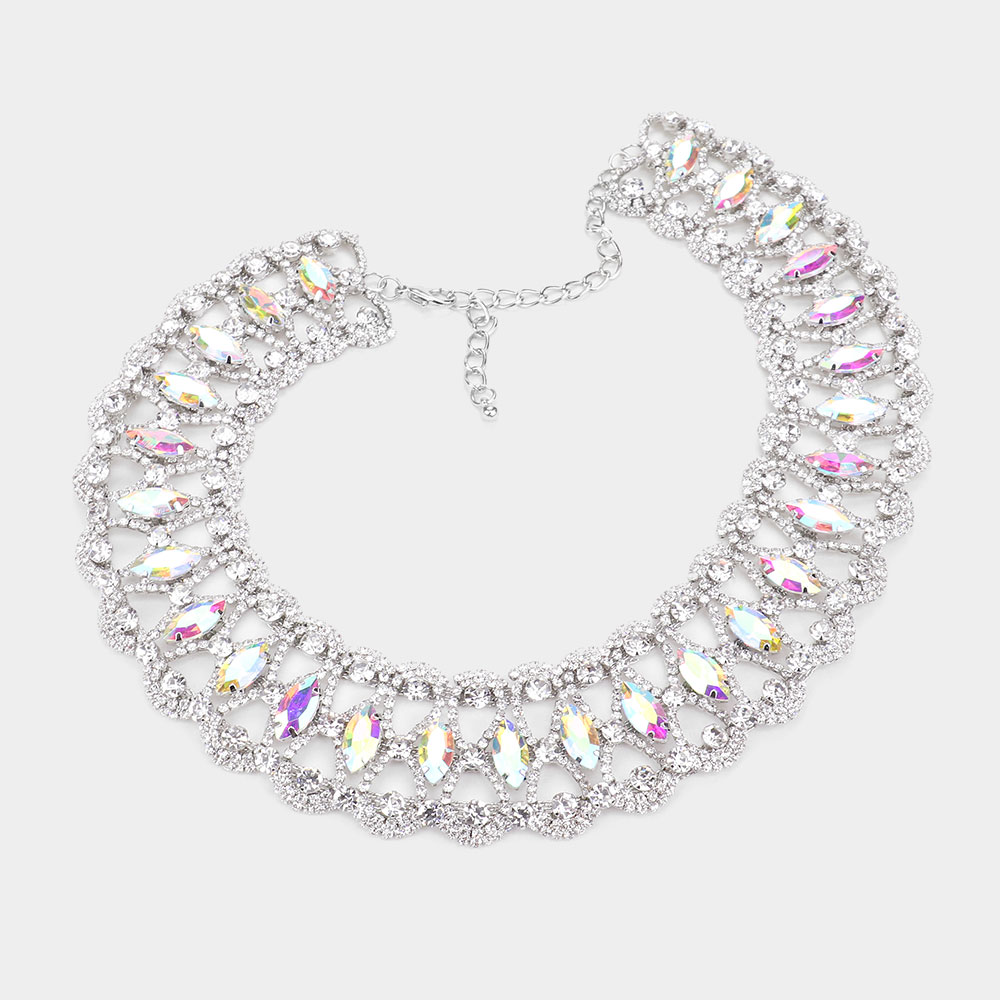 Oval Round Glass Stone Cluster Beaded Stretch Evening Bracelet