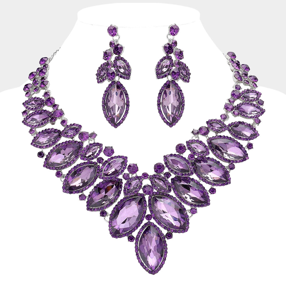 Marquise Glass Stone Cluster Embellished Statement Necklace
