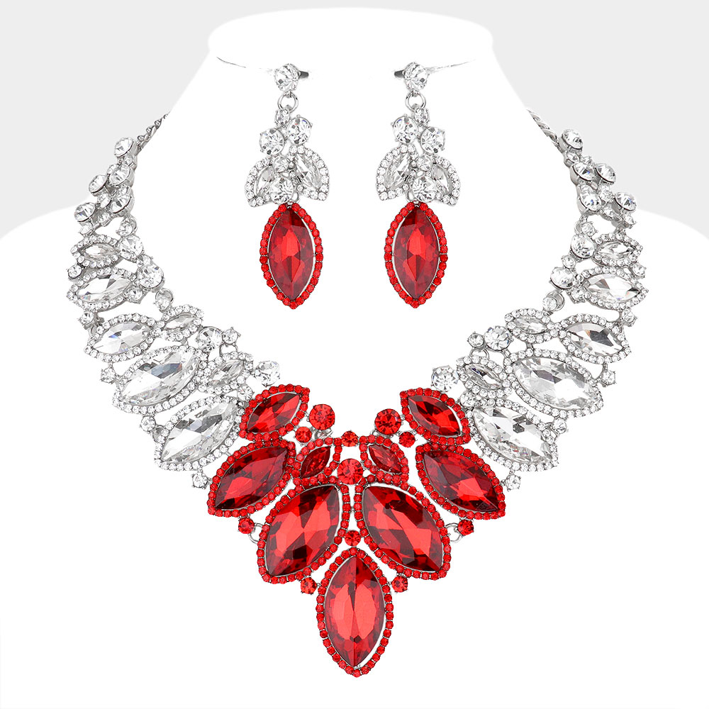 Teardrop Marquise Stone Cluster Embellished Dropdown Evening Earrings