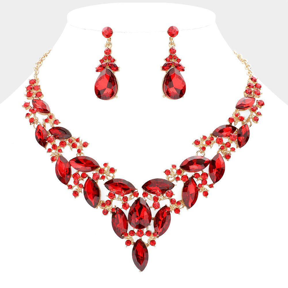 Teardrop Accented Marquise Stone Trimmed Dangle Evening Earrings