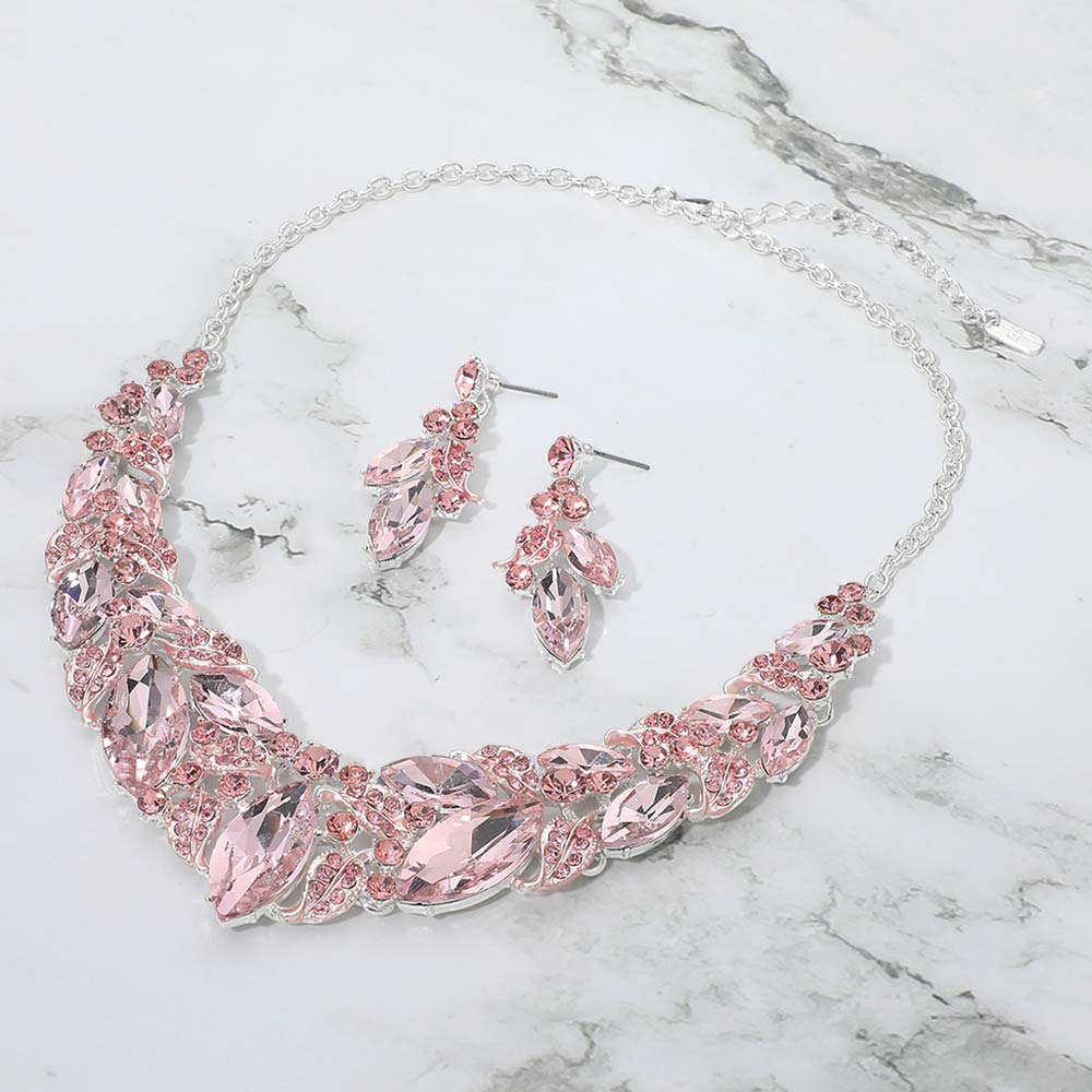 Marquise Stone Cluster Leaf Embellished Evening Necklace