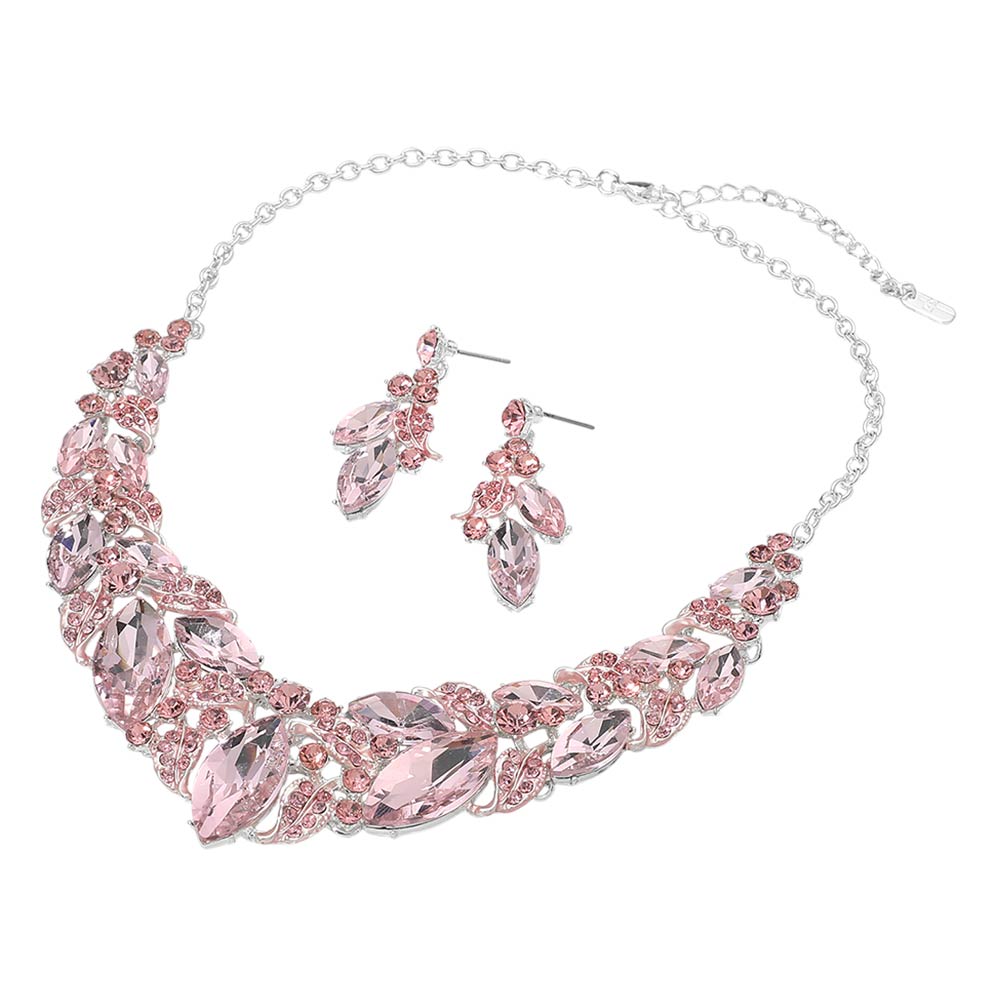 • Bold statement necklace and matching earring set designed to create a striking, elegant look. Featuring layered crystal accents arranged in a dramatic silhouette, this coordinated set enhances evening outfits, formal styling, and special occasion wear while delivering eye-catching sparkle and refined impact.