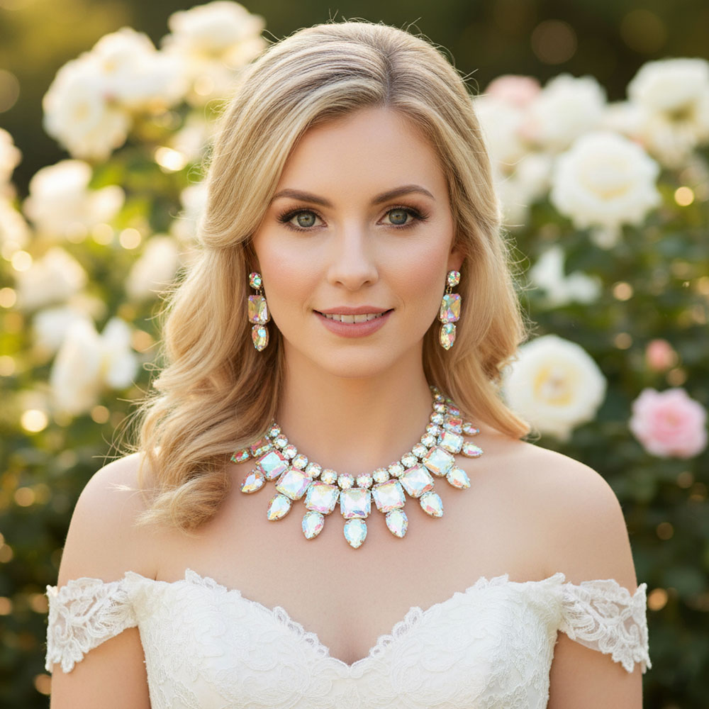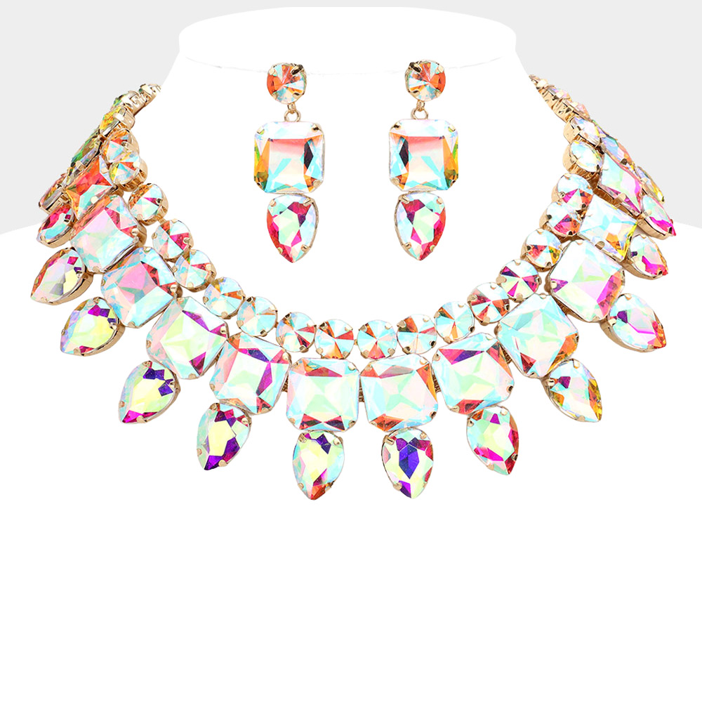 • Stunning statement jewelry set featuring a dramatic necklace and matching earrings adorned with large gemstones. Perfect for special occasions, parties, or evening events, adding glamour and sophistication to any outfit. A show-stopping accessory for an elegant, confident look.