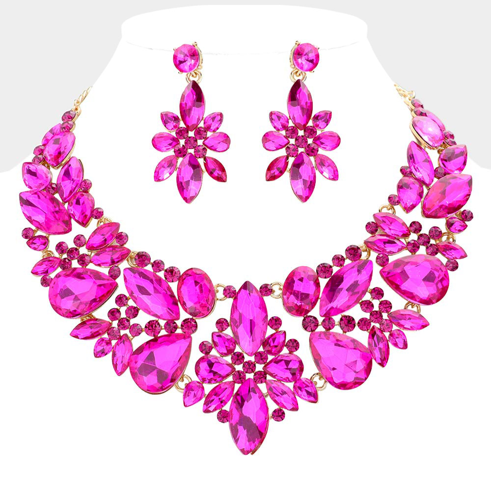 Multi Stone Cluster Evening Necklace