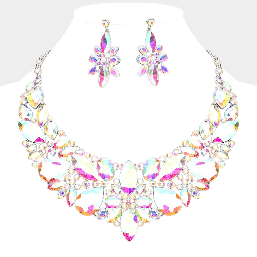 • Dazzle in timeless elegance with this rhinestone statement necklace and earring set. Featuring bold clustered crystals in a floral-inspired design, this matching set is perfect for weddings, galas, and special occasions. The adjustable necklace ensures a comfortable fit, while the lightweight earrings add just the right amount of sparkle. A must-have for bridal looks, evening wear, or anyone wanting to make a glamorous entrance.