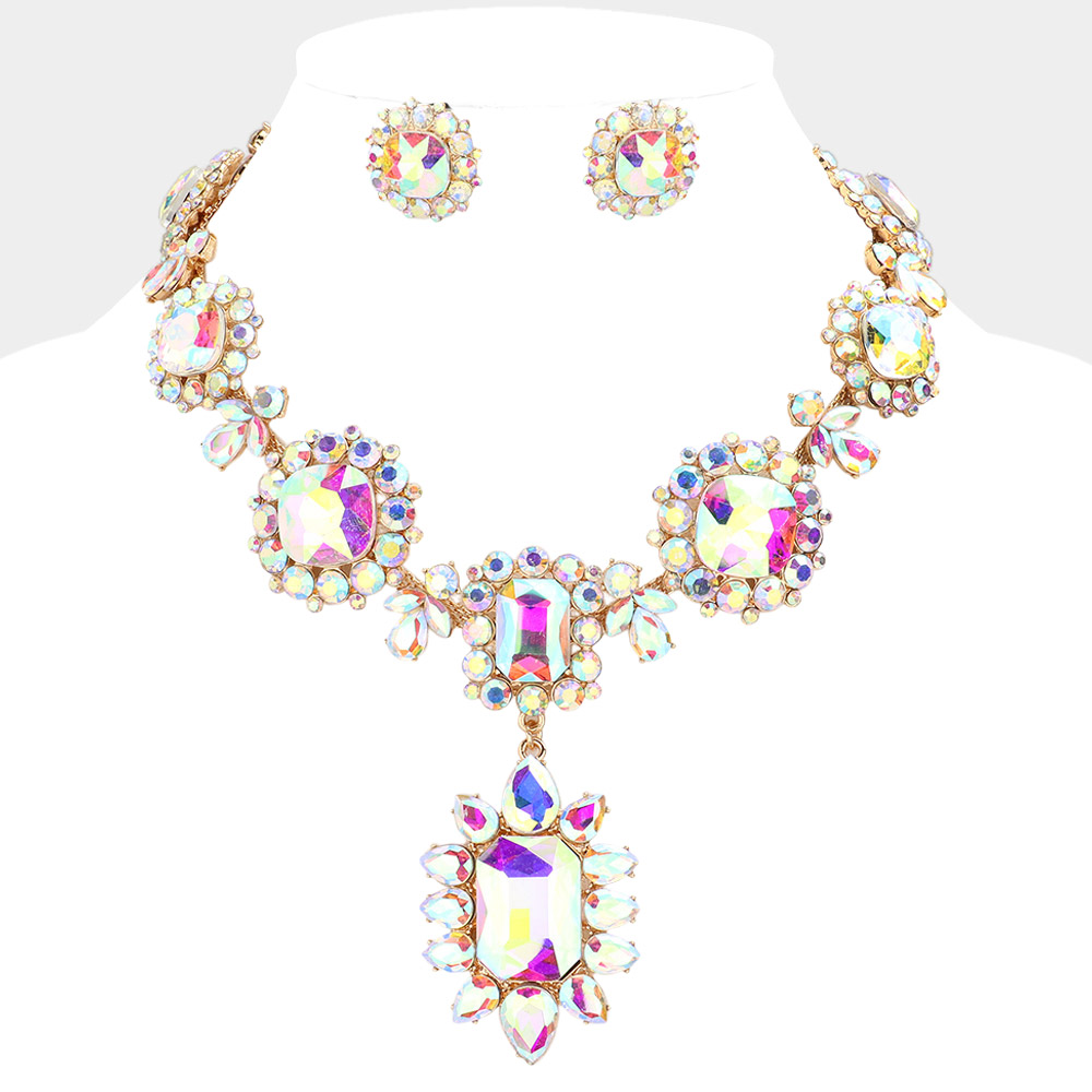 • Elegant statement necklace and earring set featuring brilliant crystal accents in a bold design. Perfect for weddings, formal events, or evening wear, this dazzling jewelry set adds glamour and sophistication to any outfit with its radiant sparkle and timeless appeal.