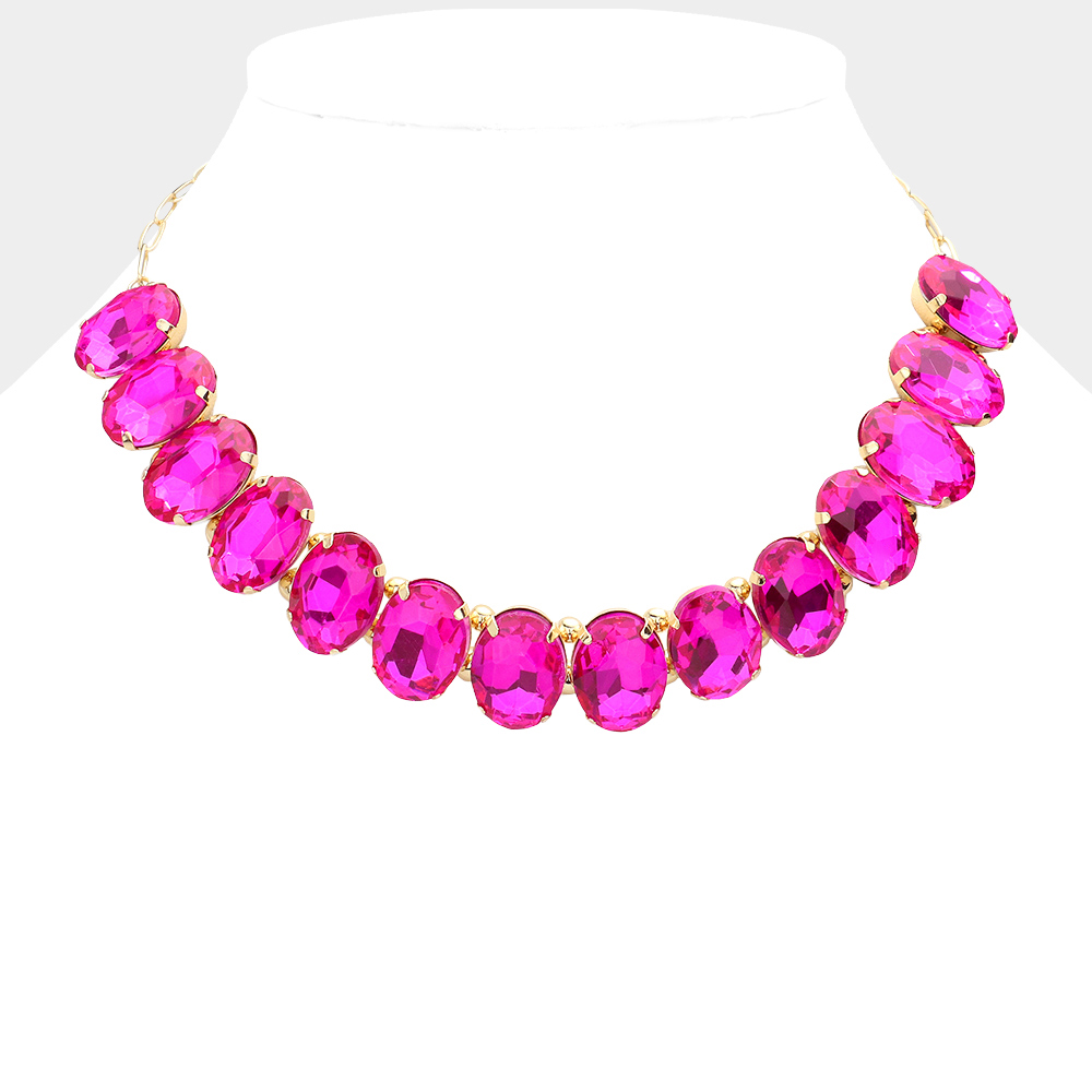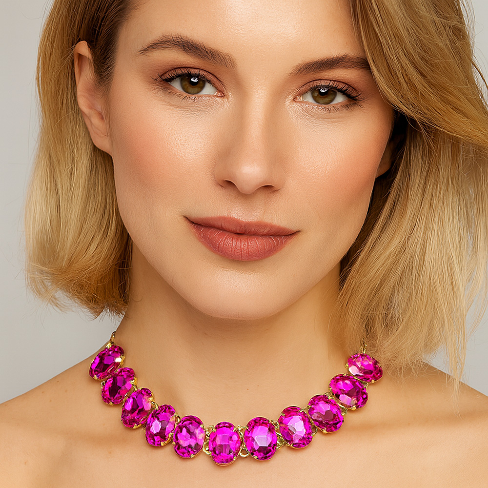 • Elevate your look with this stunning statement necklace featuring bold oval-cut gemstones. Designed to add sparkle and sophistication, it’s the perfect accessory for special occasions, evening events, or to make any outfit stand out with timeless elegance.
