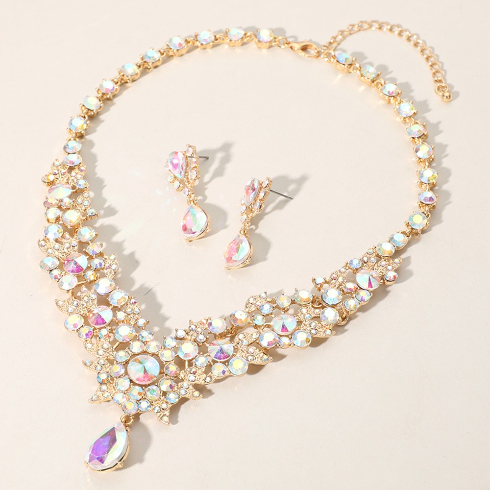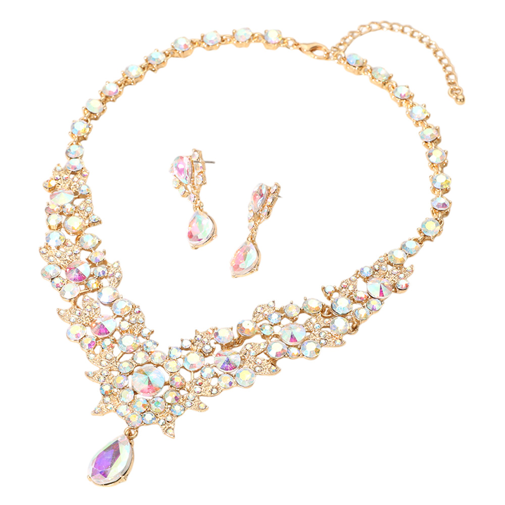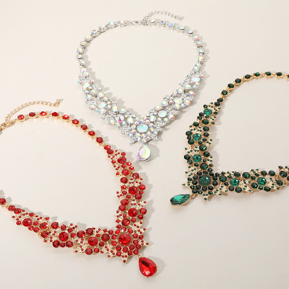 Rhinestone Cluster Embellished Teardrop Stone Pendant Pointed Necklace