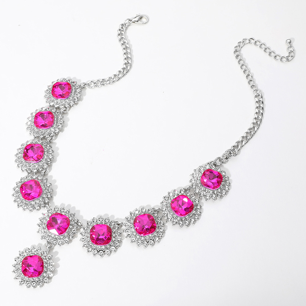 Round Glass Stone Cluster Link Evening Necklace