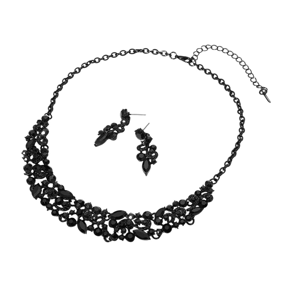 Round Marquise Stone Cluster Embellished Evening Necklace
