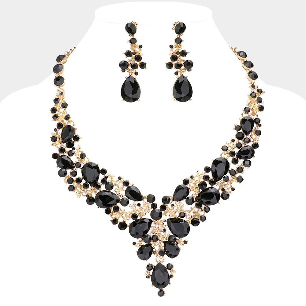 Pearl Round Teardrop Stone Accented Evening Necklace