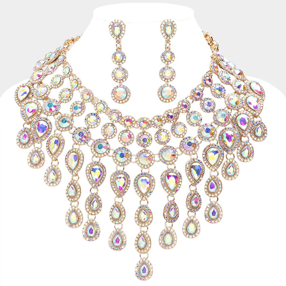 Round Teardrop Stone Cluster Evening Bib Necklace