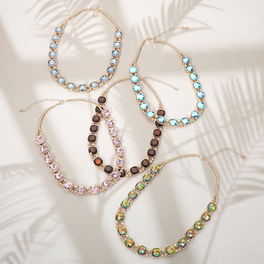 Square Faceted Stone Bezel Link Evening Necklace Square Faceted Stone Bezel Link Evening Necklace Square Faceted Stone Bezel Link Evening Necklace