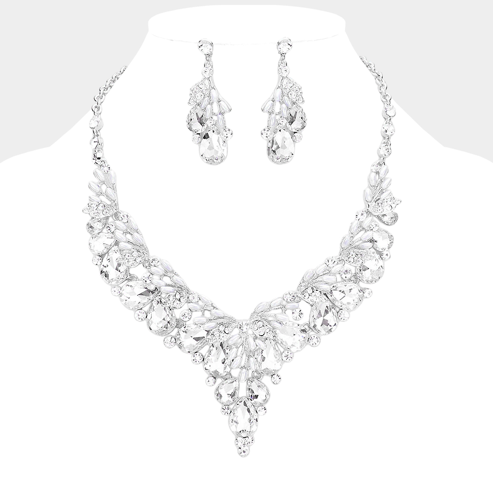 Teardrop Glass Crystal Vine Collar Evening Necklace