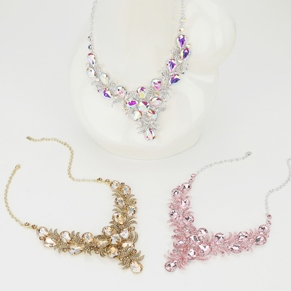 Teardrop Glass Stone Flower Pointed Evening Necklace