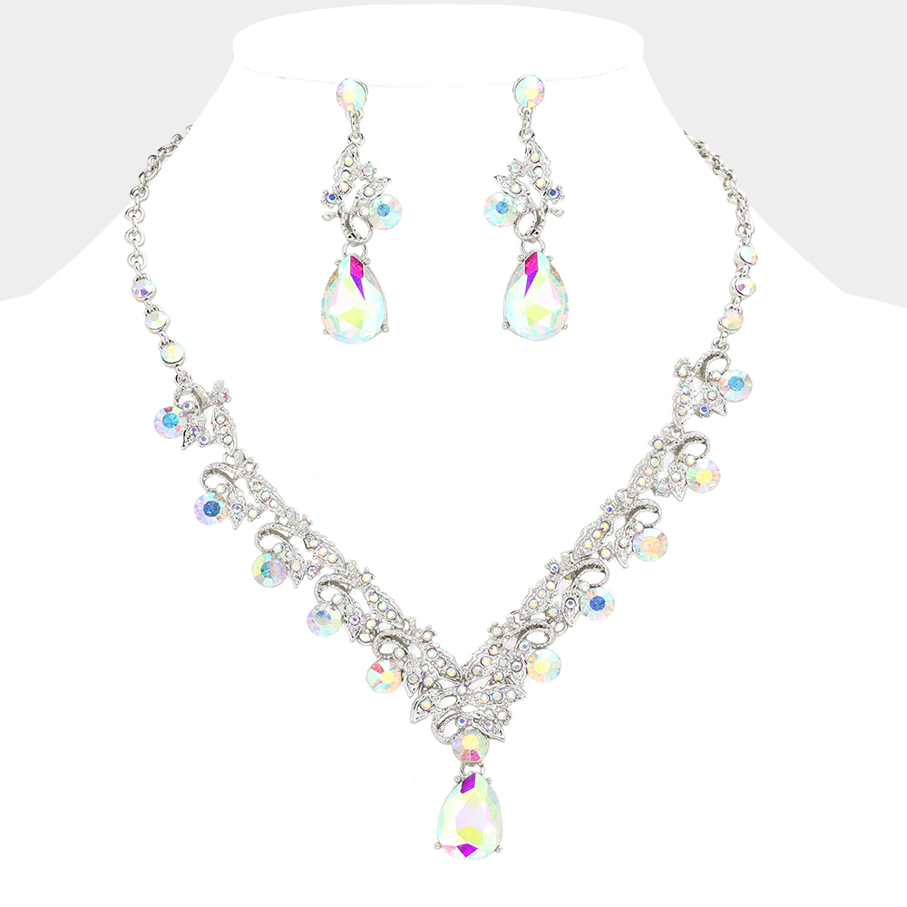 Crystal Rhinestone Trim Teardrop Collar Evening Necklace