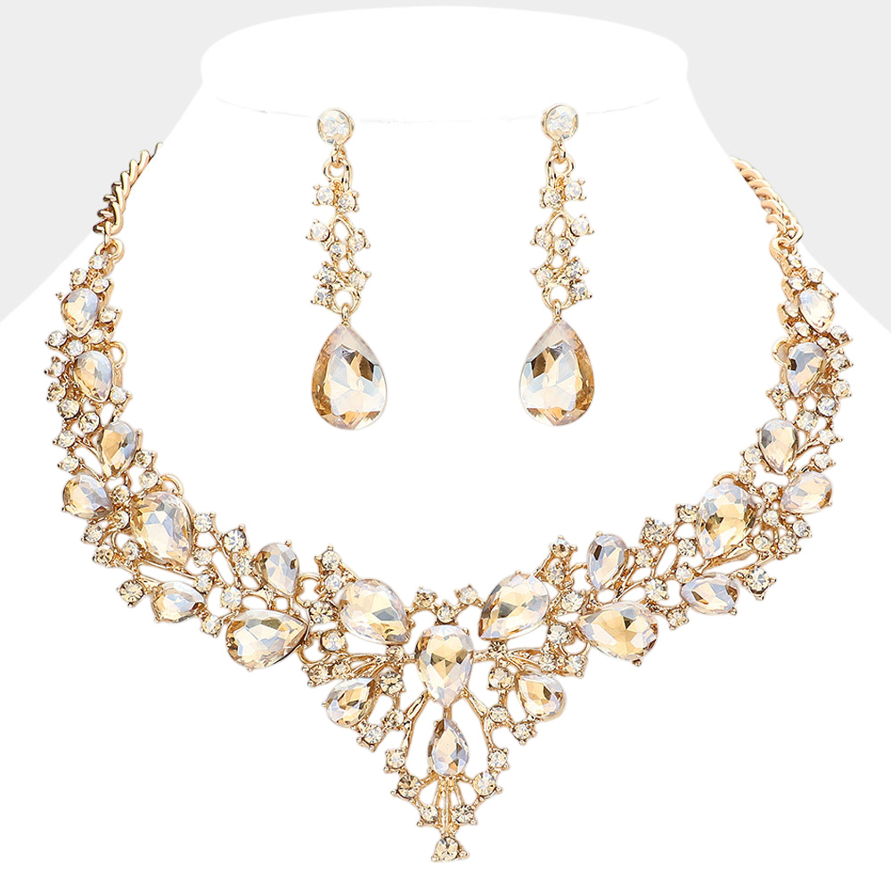 Teardrop Round Stone Cluster Evening Necklace