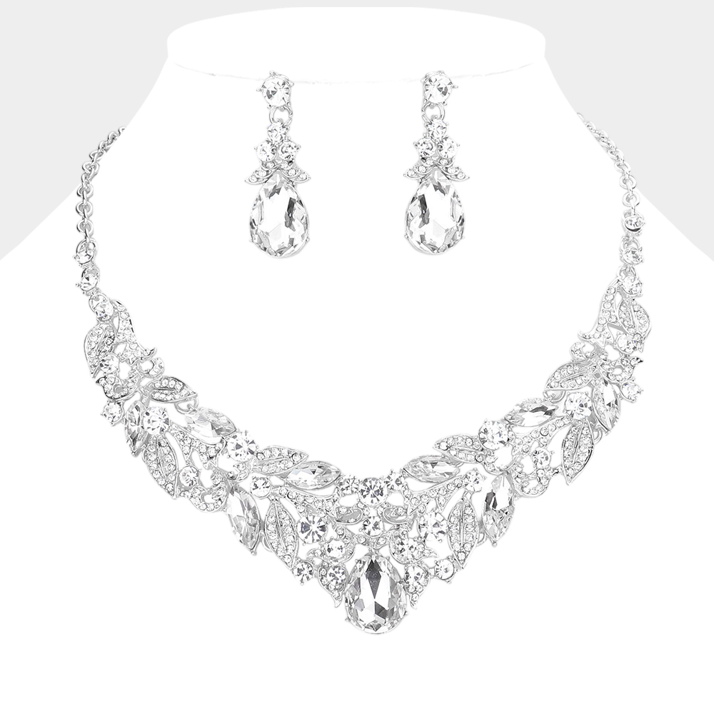 Teardrop Glass Stone Cluster Embellished Evening Necklace
