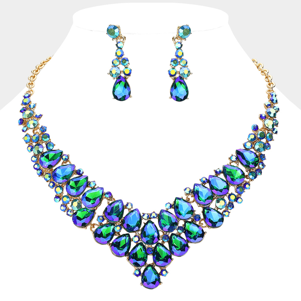 Teardrop Round Stone Accented Leaf Evening Necklace