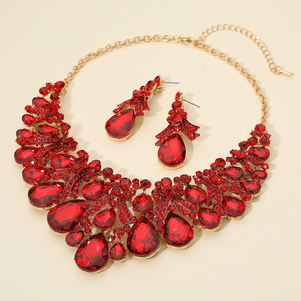 • Make an unforgettable impression with this statement teardrop bib necklace and earring set. Adorned with an array of dazzling stones and intricate detailing, this bold jewelry set adds luxurious sparkle and sophistication—perfect for weddings, galas, and evening events.