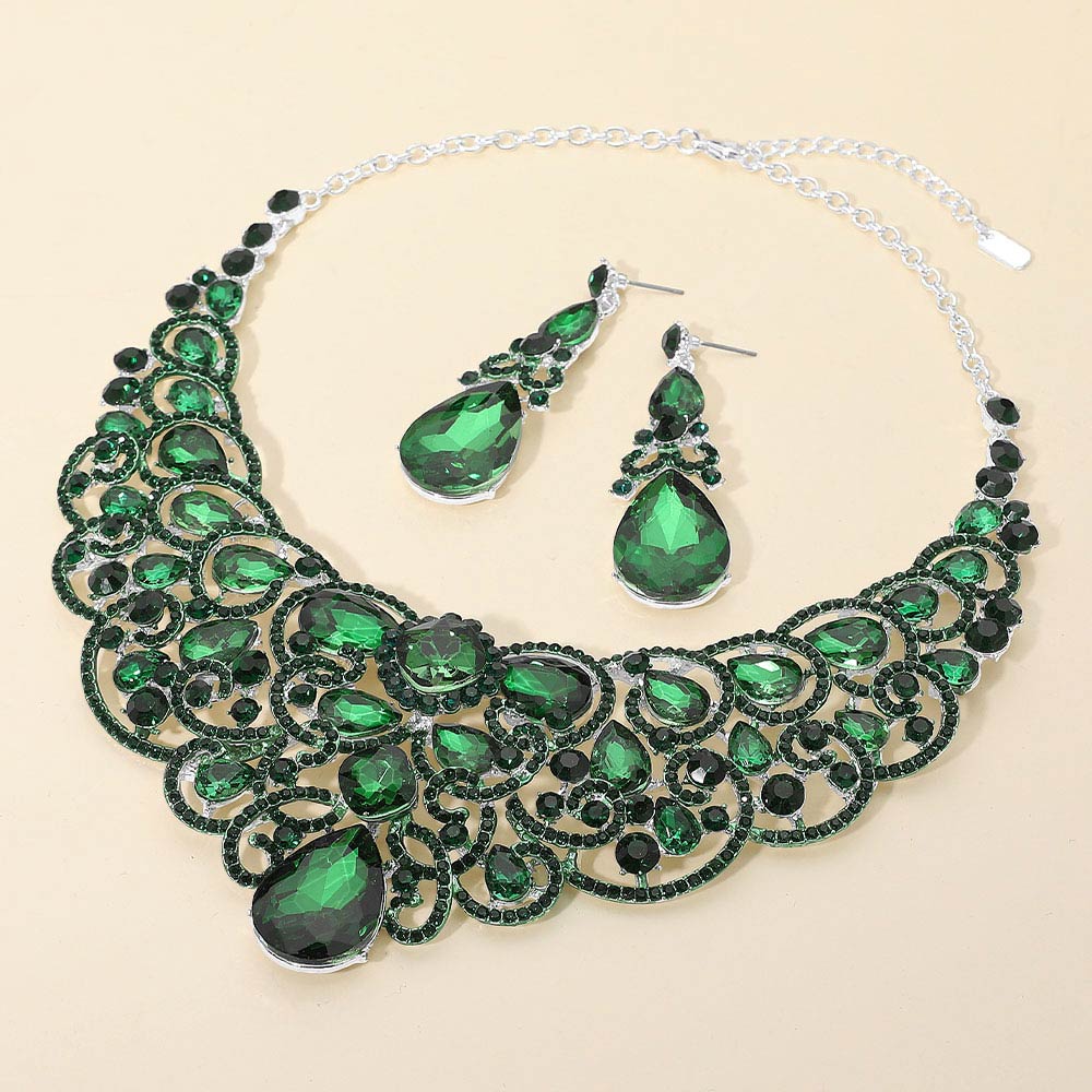 Teardrop Stone Cluster Embellished Collar Evening Necklace