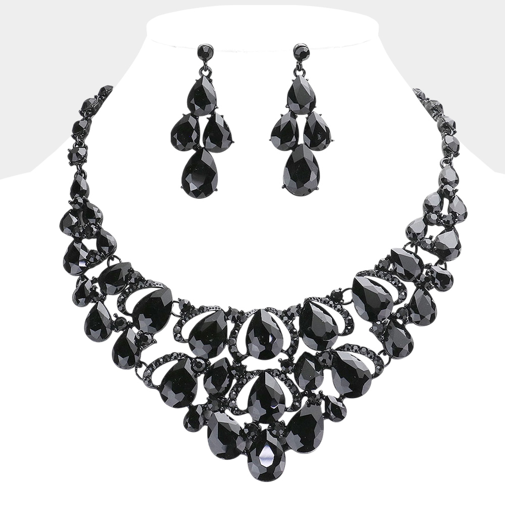 Teardrop Stone Cluster Evening Necklace