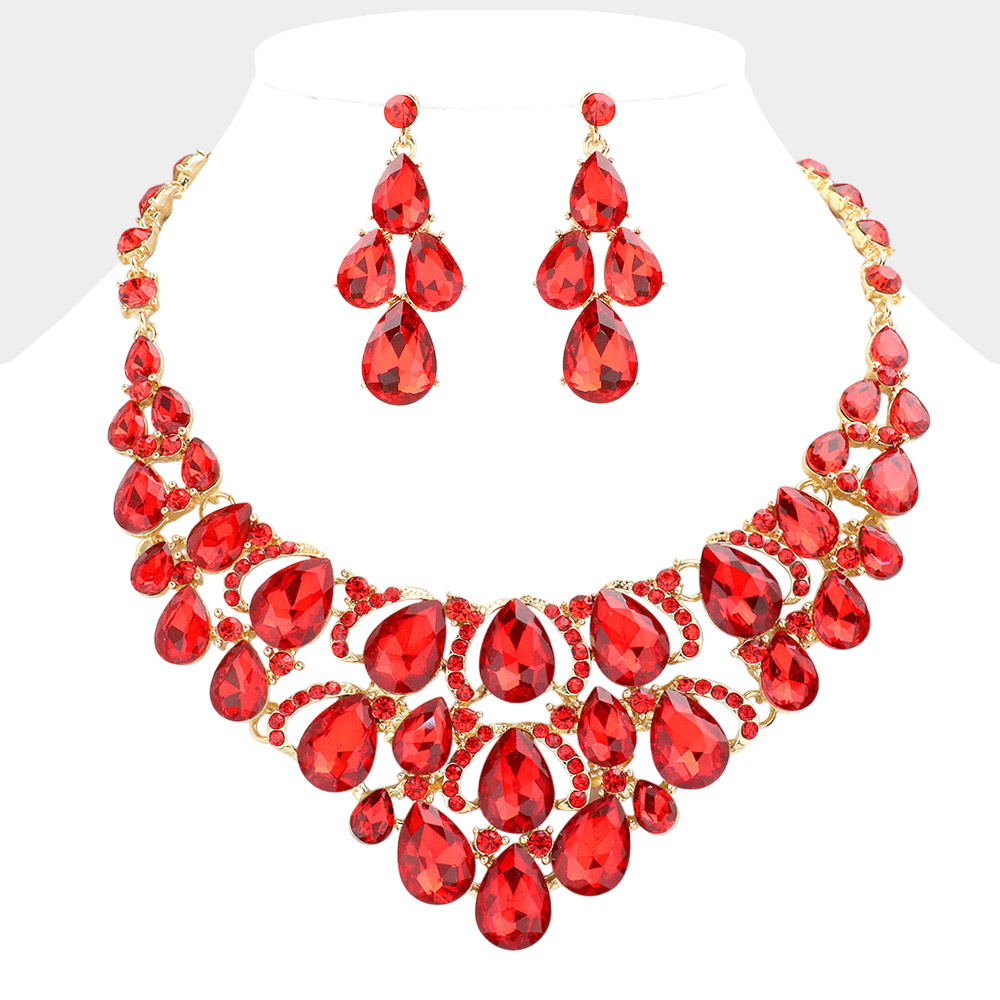 Teardrop Stone Cluster Evening Necklace