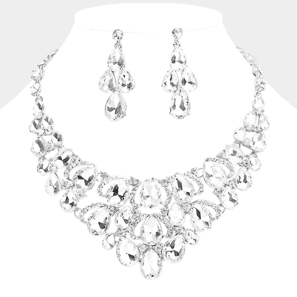 Teardrop Round Stone Cluster Embellished Rhinestone Paved Necklace