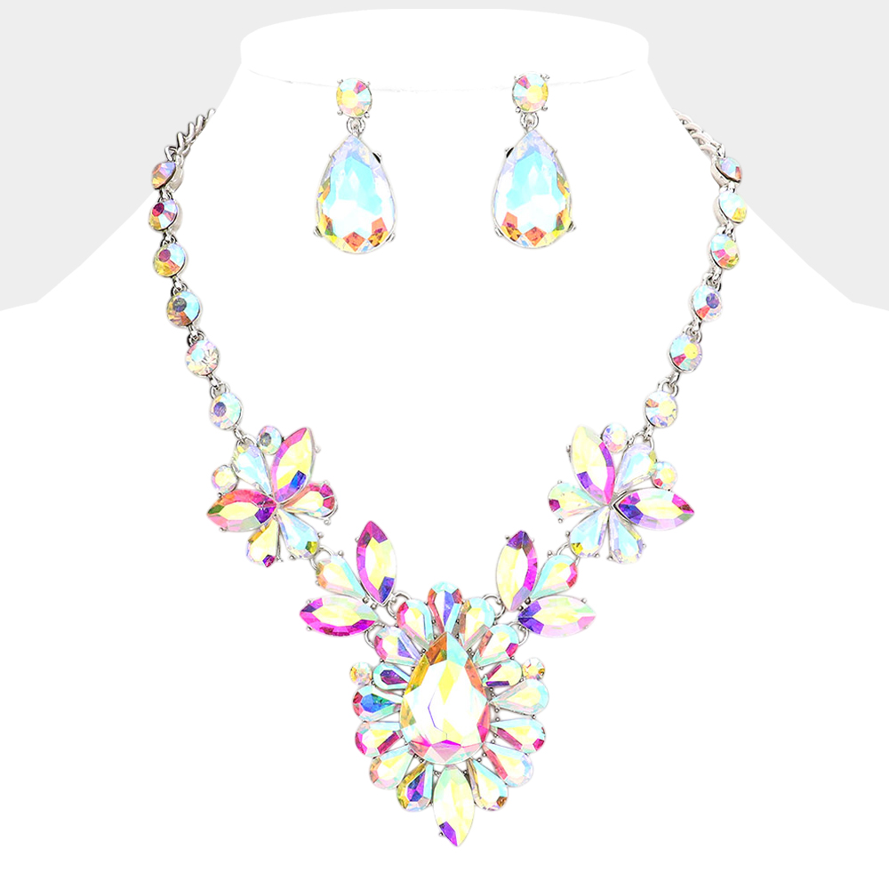 Marquise Stone Cluster Statement Evening Necklace