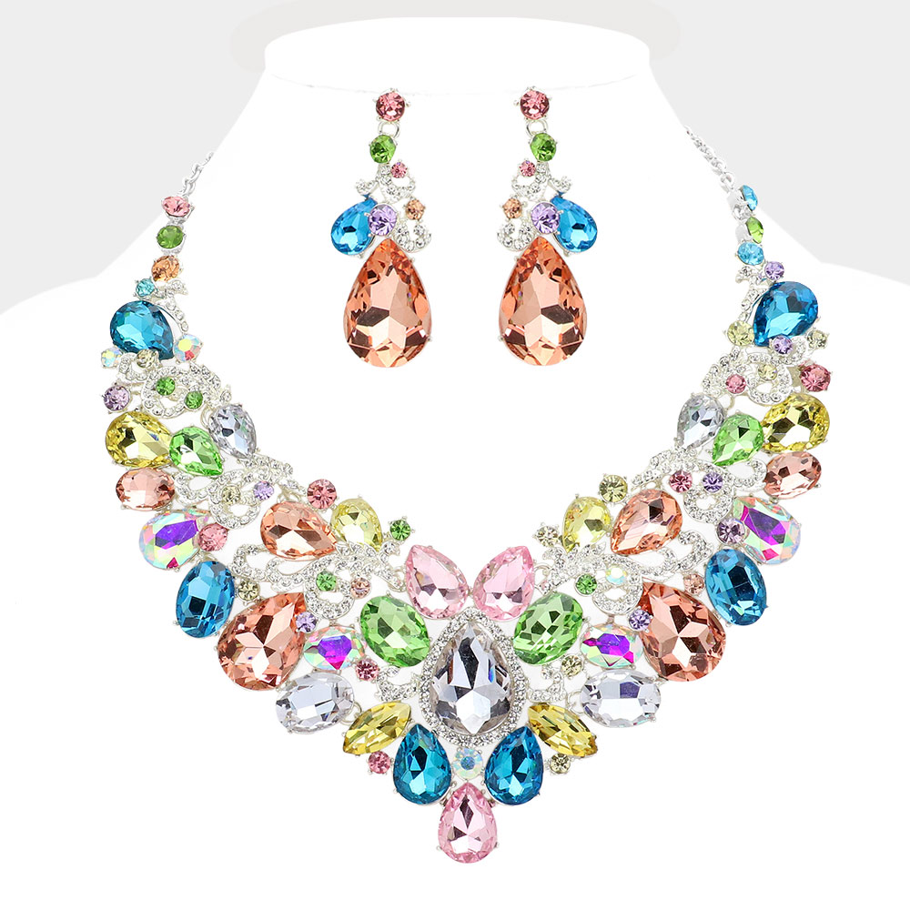 Bold Rhinestone Studded Open Heart Drop Dangle Statement Evening Earrings