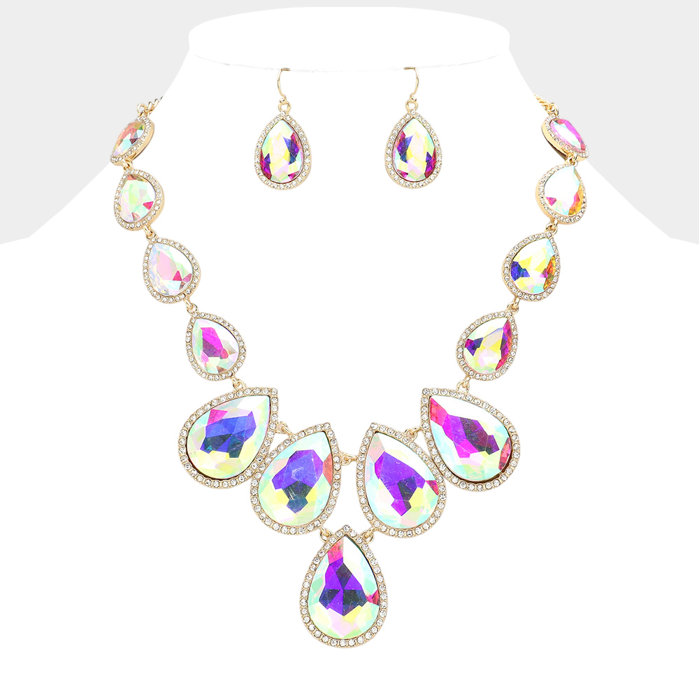 Teardrop Stone Link Evening Necklace