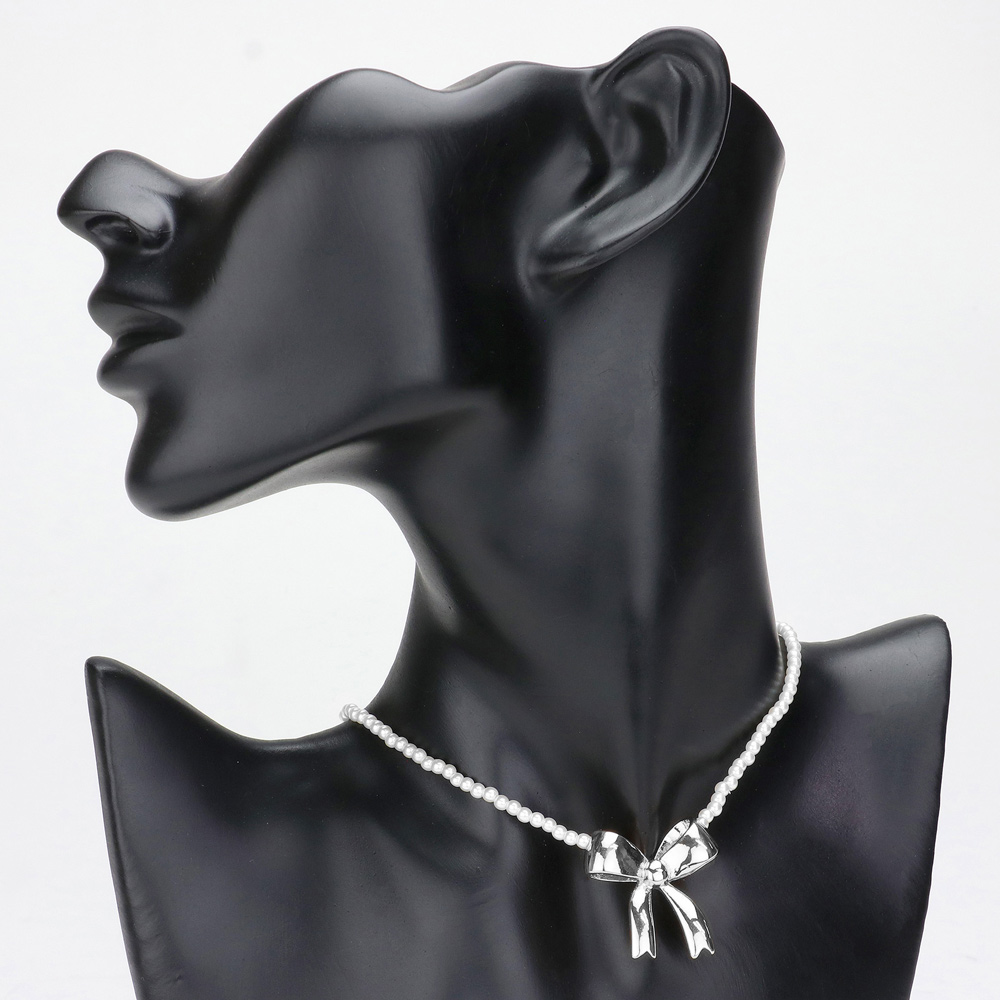 Metal Bow Pendant Pointed Pearl Choker Necklace