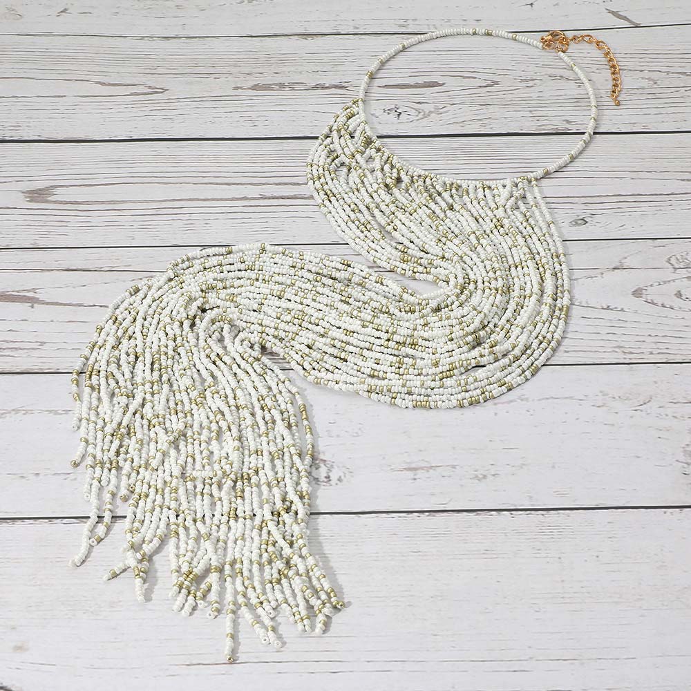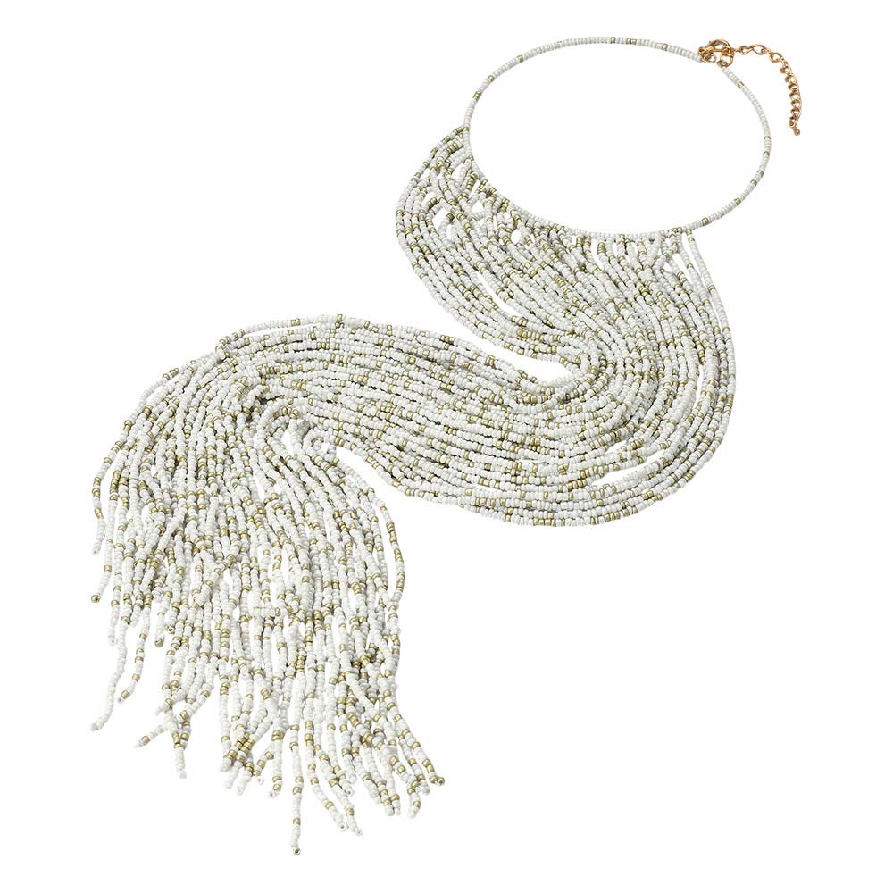 Oversized Seed Beaded Fringe Statement Choker Necklace