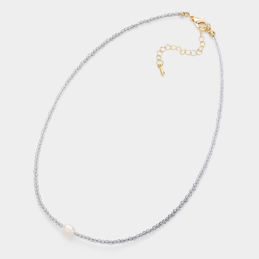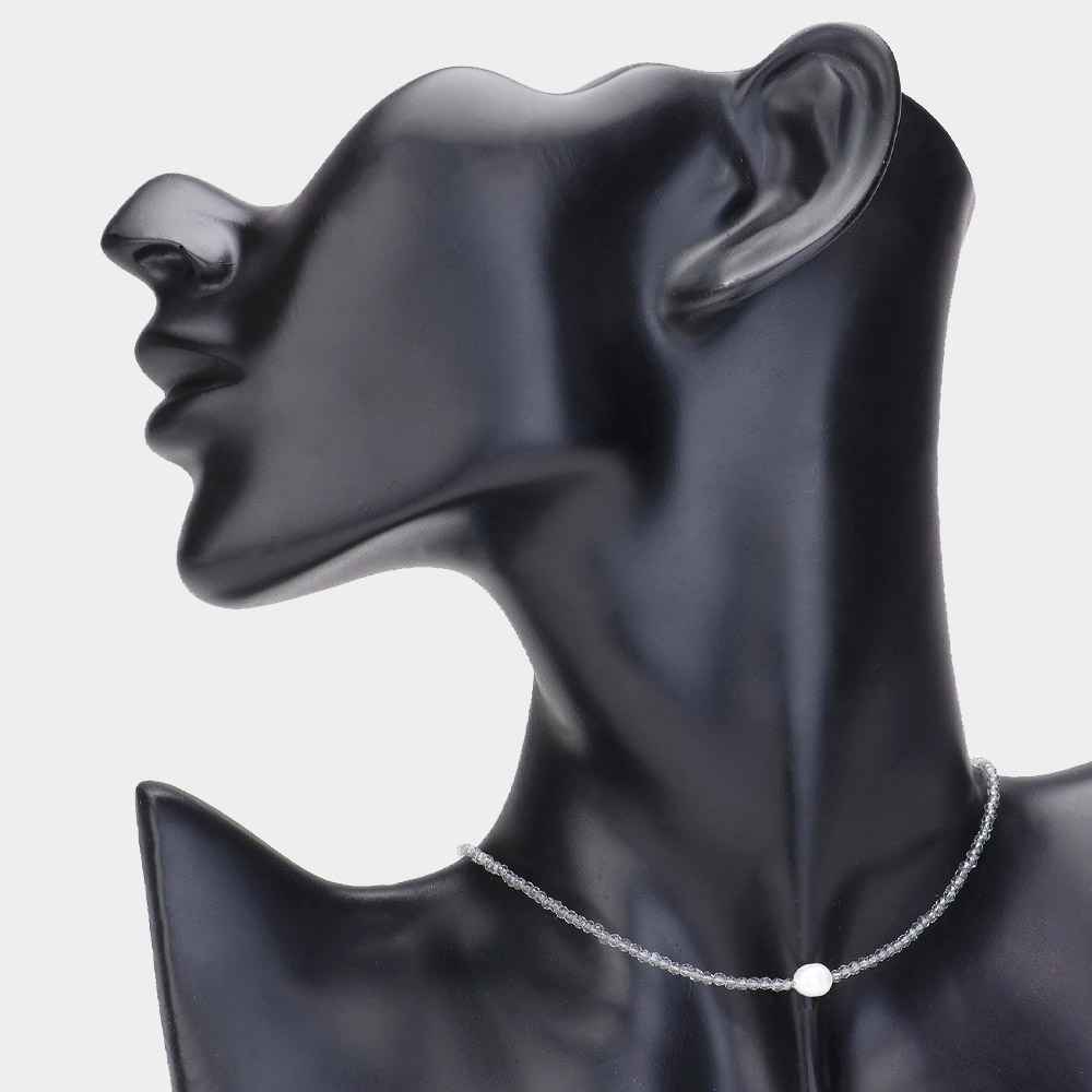 Pearl Pointed Faceted Beaded Choker Necklace