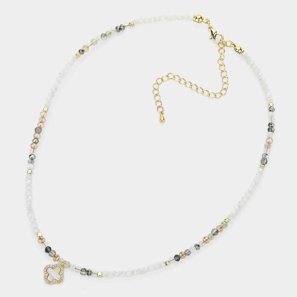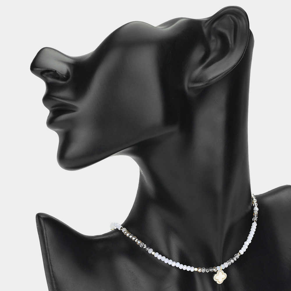 Quatrefoil Pendant Pointed Faceted Beaded Choker Necklace