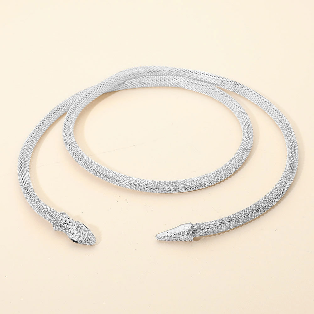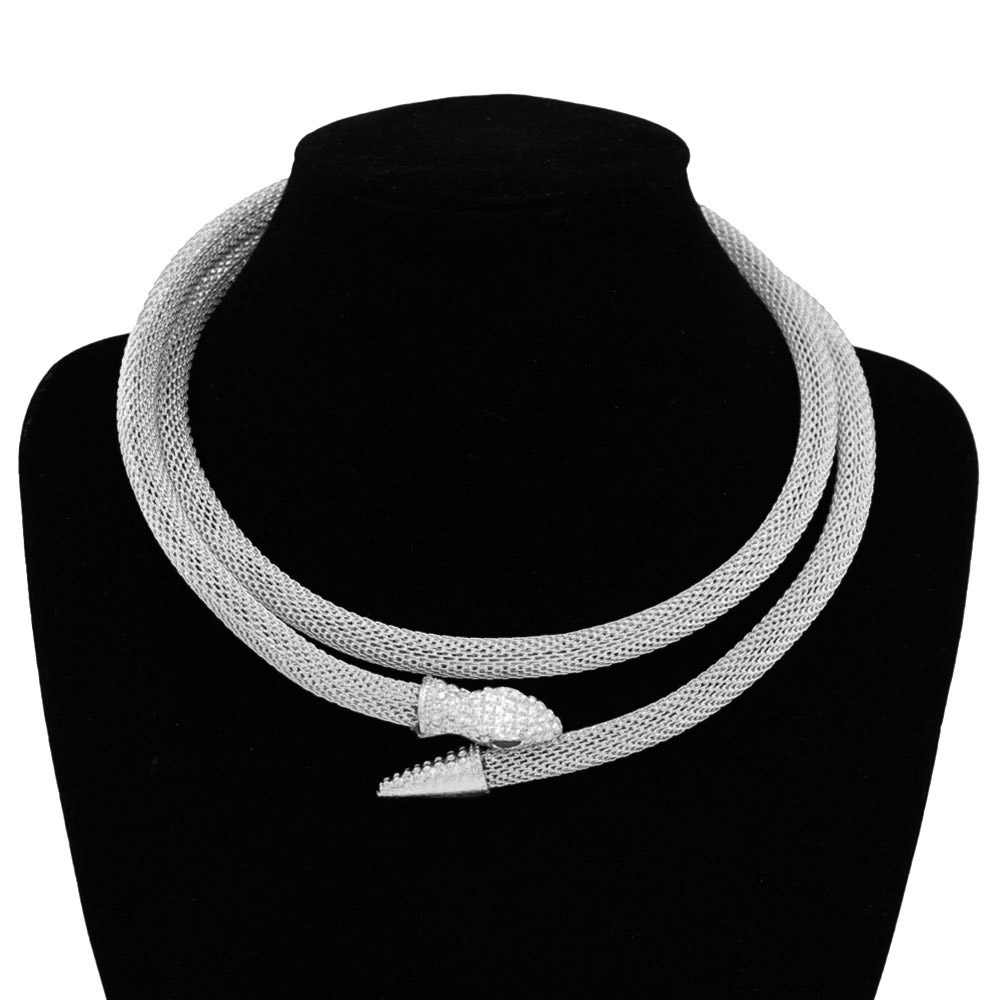 Details • Size : 34" L • Decor Size : 0.5" L • Make a bold fashion statement with the Elegant Snake Choker Necklace featuring a textured mesh design and sparkling tip accents. Its flexible wrap style and refined shine bring modern sophistication and timeless allure to any outfit, perfect for both evening and casual wear. • Lead and Nickel Compliant