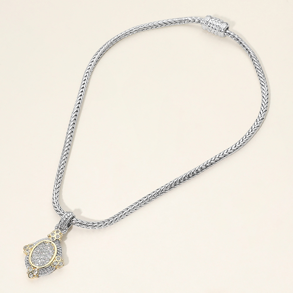 Details • Necklace Size : 16.5" L • Pendant Size : 0.9" X 1.7" • Magnetic Closure • Stylish chain necklace featuring a sleek oval pendant with refined sparkle and a secure magnetic clasp for easy wear. Designed for everyday elegance or special occasions, this versatile necklace layers beautifully or stands out on its own for a polished look. • CZ Cubic Zirconia • Gold Dipped