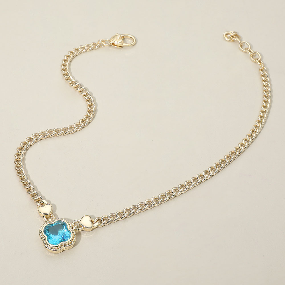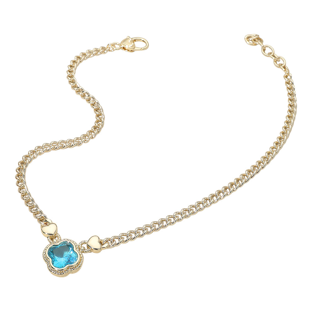 14K Gold Plated CZ Quatrefoil Pendant Pointed Chain Necklace