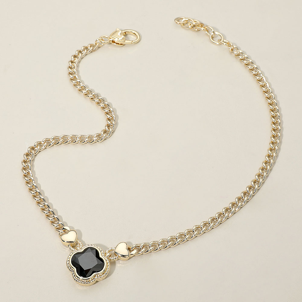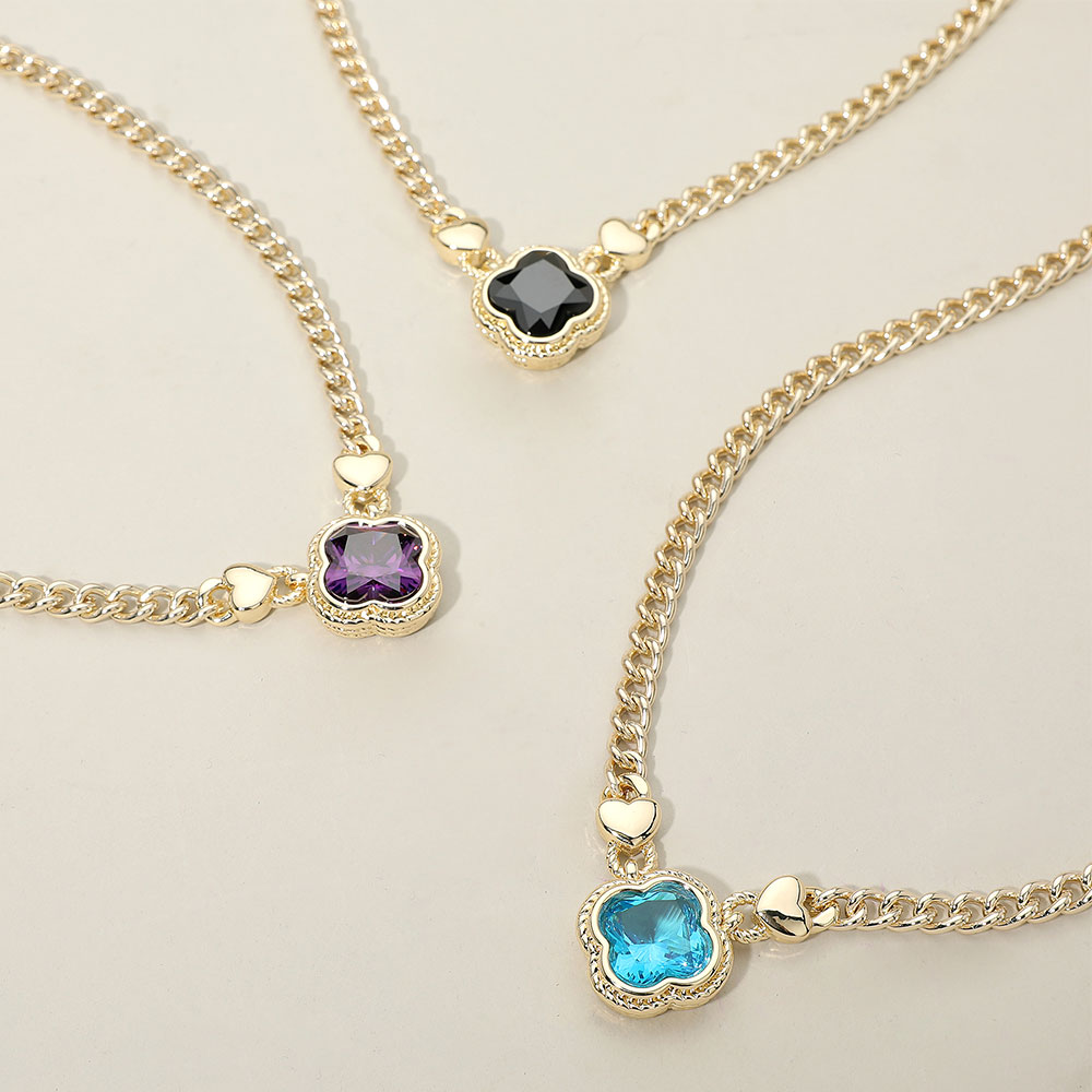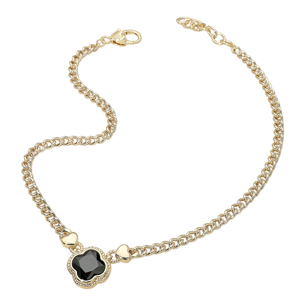 14K Gold Plated CZ Quatrefoil Pendant Pointed Chain Necklace