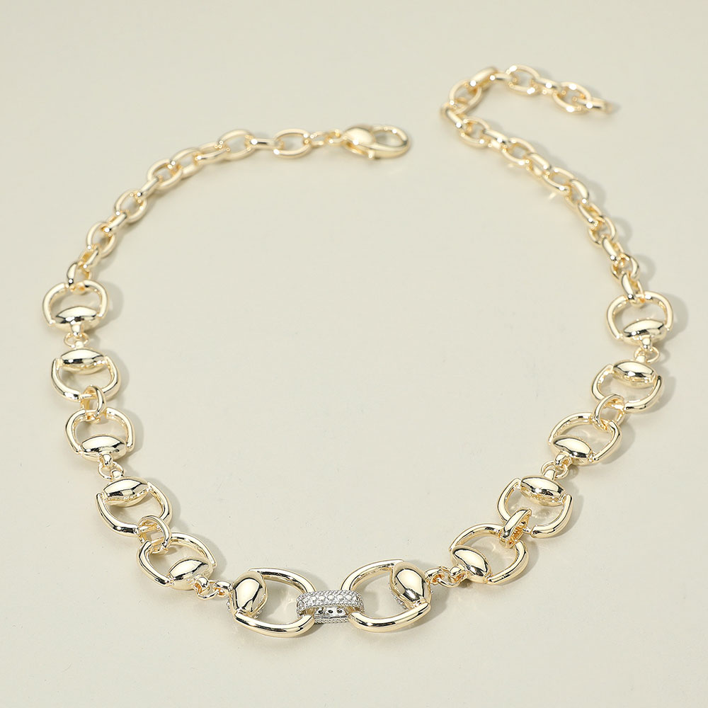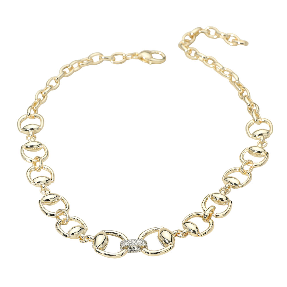 Details • Necklace Size : 15" + 5.5" L • Decor Size : 0.7" L • Stylish chain necklace featuring bold interlocking links with a shimmering accent detail at the center. A statement accessory that adds modern elegance to casual or formal outfits, perfect for versatile everyday wear. • CZ Cubic Zirconia • Gold Dipped