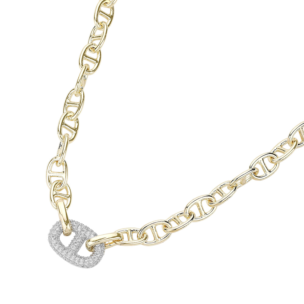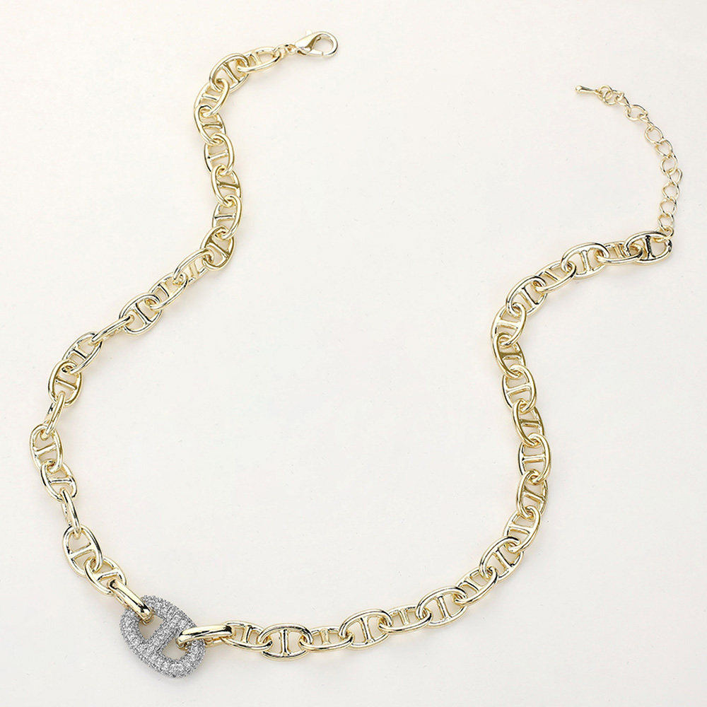 14K Gold Plated CZ Stone Paved Mariner Link Accented Necklace 14K Gold Plated CZ Stone Paved Mariner Link Accented Necklace 14K Gold Plated CZ Stone Paved Mariner Link Accented Necklace