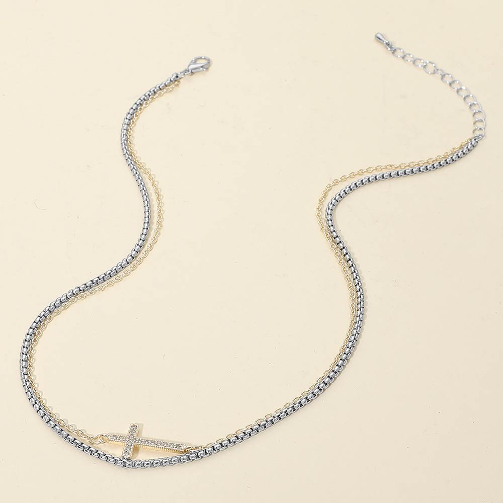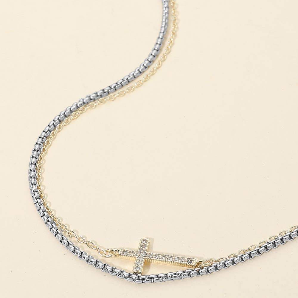 • Elegant double chain necklace featuring a refined cross pendant with pavĂ©-style sparkle detail. Designed for effortless layering or solo wear, this necklace offers timeless symbolism with a modern edge. A versatile accessory suited for everyday styling, gifting moments, and curated boutique jewelry collections.