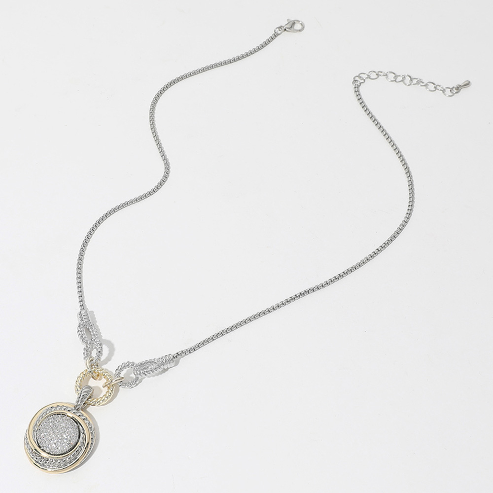 14K Gold Plated Two Tone CZ Stone Paved Disc Pendant Necklace