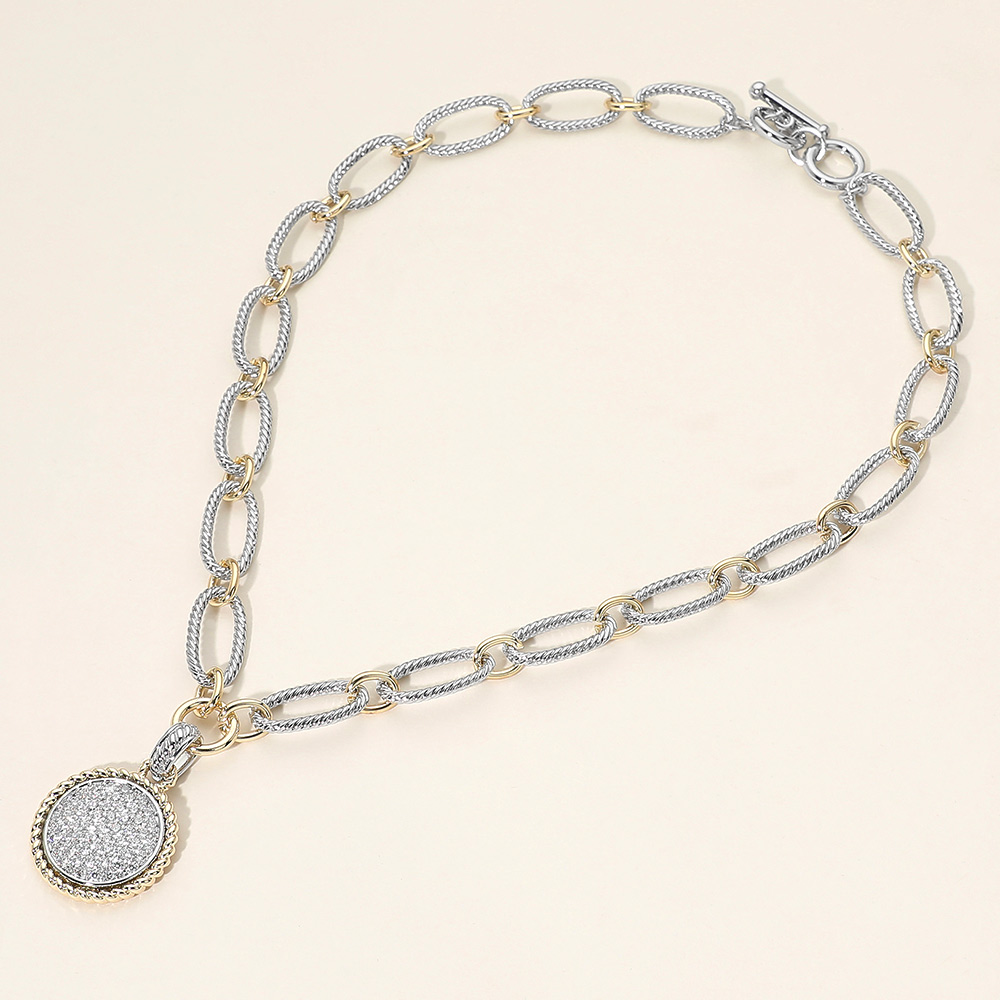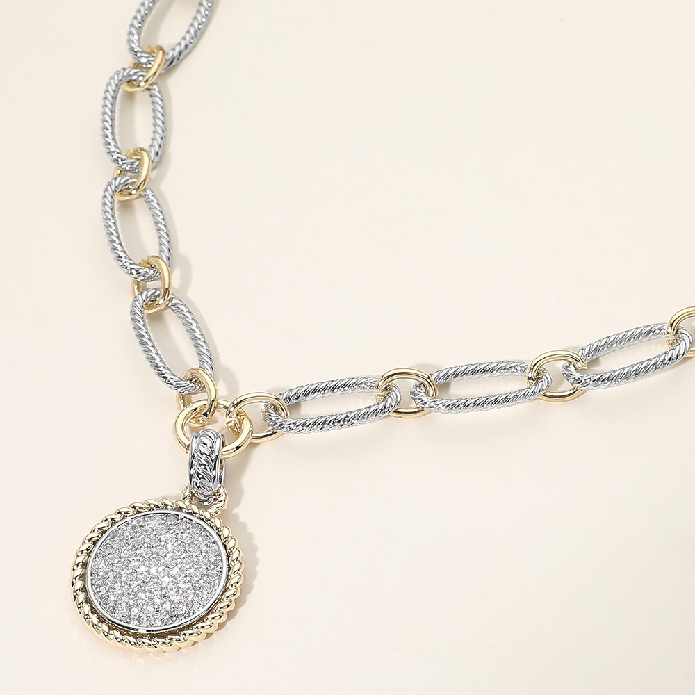Details • Necklace Size : 15.5" + 1" L • Decor Size : 0.4" L • Pendant Size : 1" X 1.5" • Elegant link chain necklace featuring a refined oval sparkle pendant designed to add instant polish to everyday and dressy looks. The balanced chain style offers a modern statement that layers effortlessly or stands alone as a timeless accessory for boutiques and gift selections. • CZ Cubic Zirconia • Gold Dipped