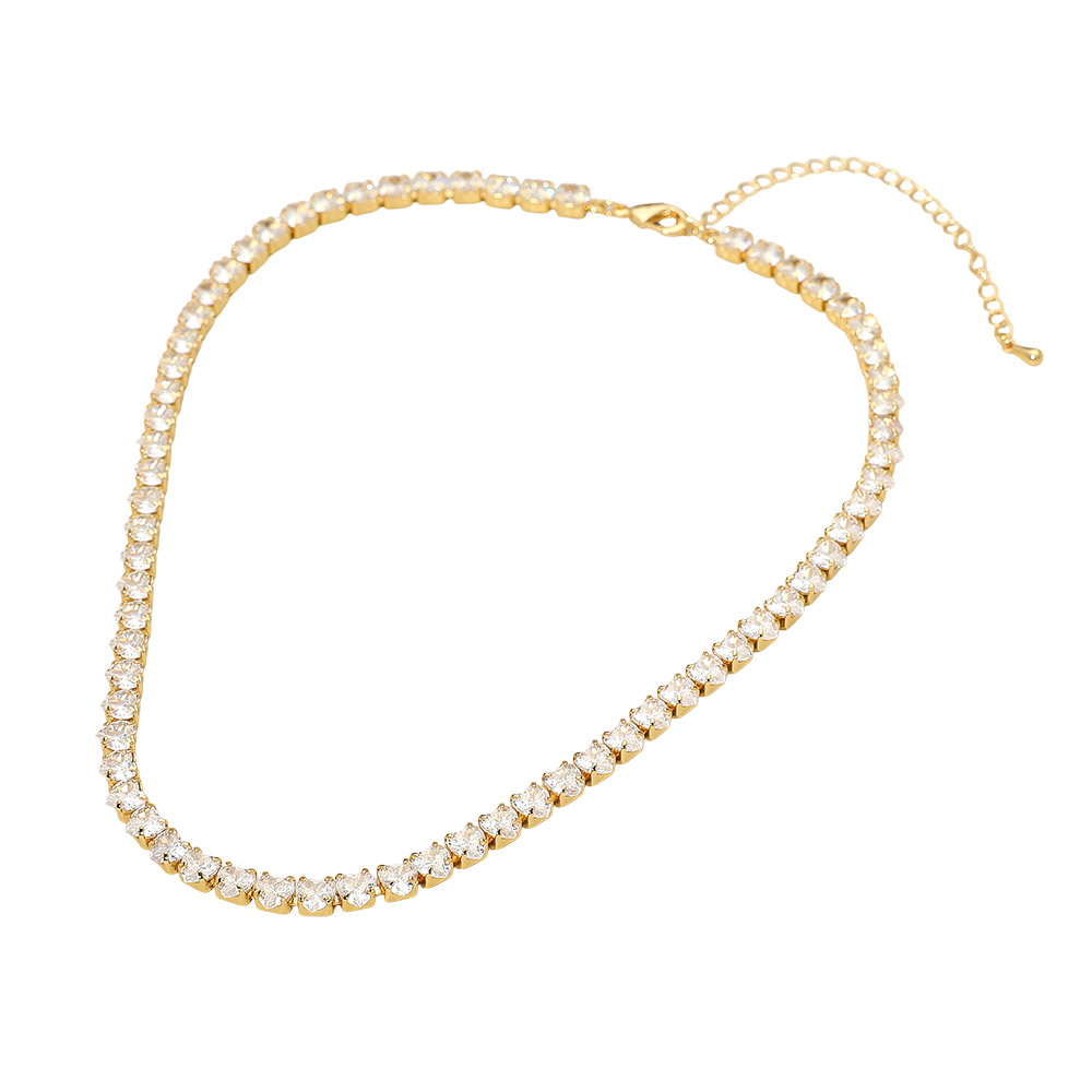 18K Gold Dipped Heart Tennis Chain Necklace 18K Gold Dipped Heart Tennis Chain Necklace 18K Gold Dipped Heart Tennis Chain Necklace