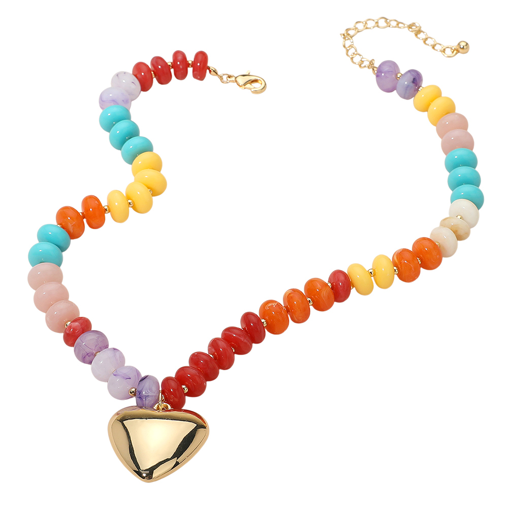 Details • Necklace Size : 18" + 3" L • Decor Size : 0.4" L • Pendant Size : 1.25" X 1.25" • Add charm to any outfit with this beaded necklace featuring smooth, earthy-toned beads and a bold polished heart pendant. Perfect for layering or wearing solo, it’s a versatile accessory that blends natural elegance with a modern statement look. • Gold Dipped • Lead and Nickel Compliant
