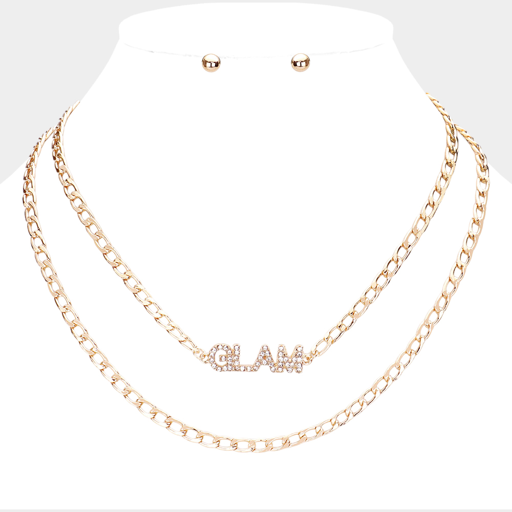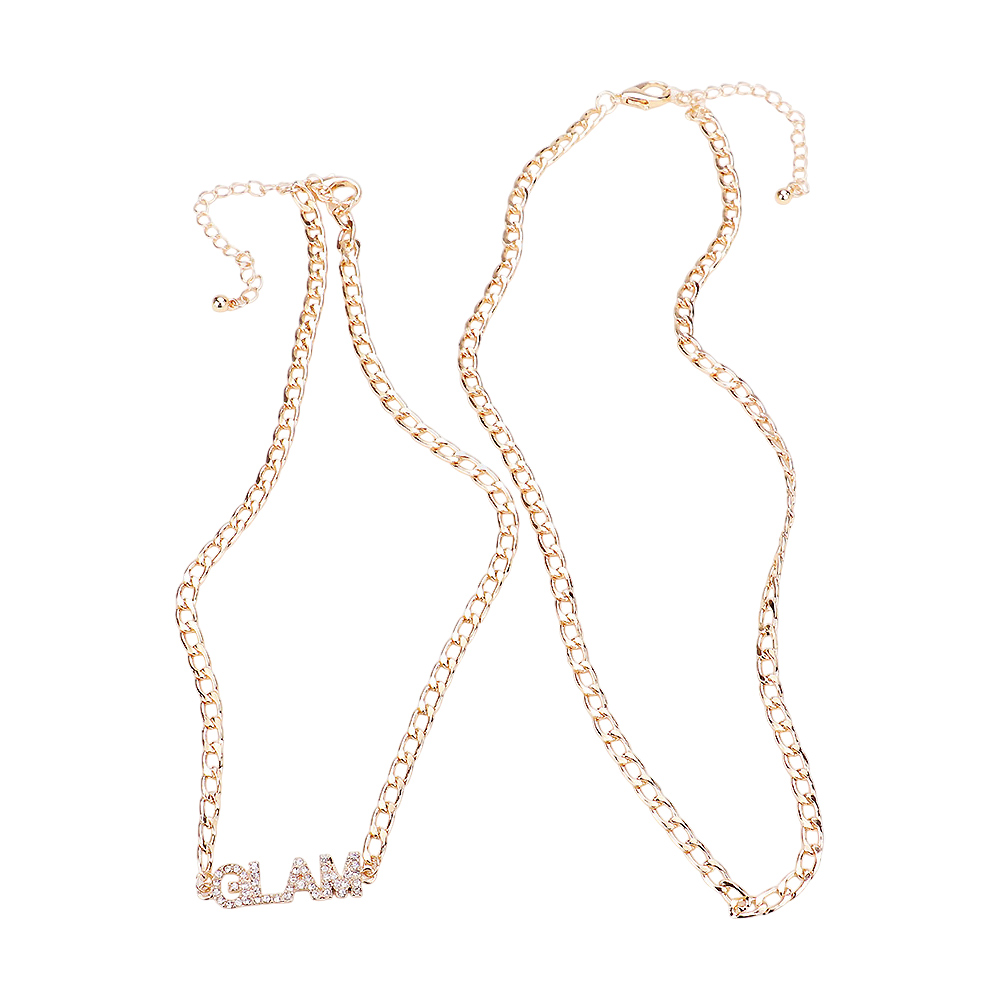 2PCS - GLAM Rhinestone Embellished Pendant Message Necklaces