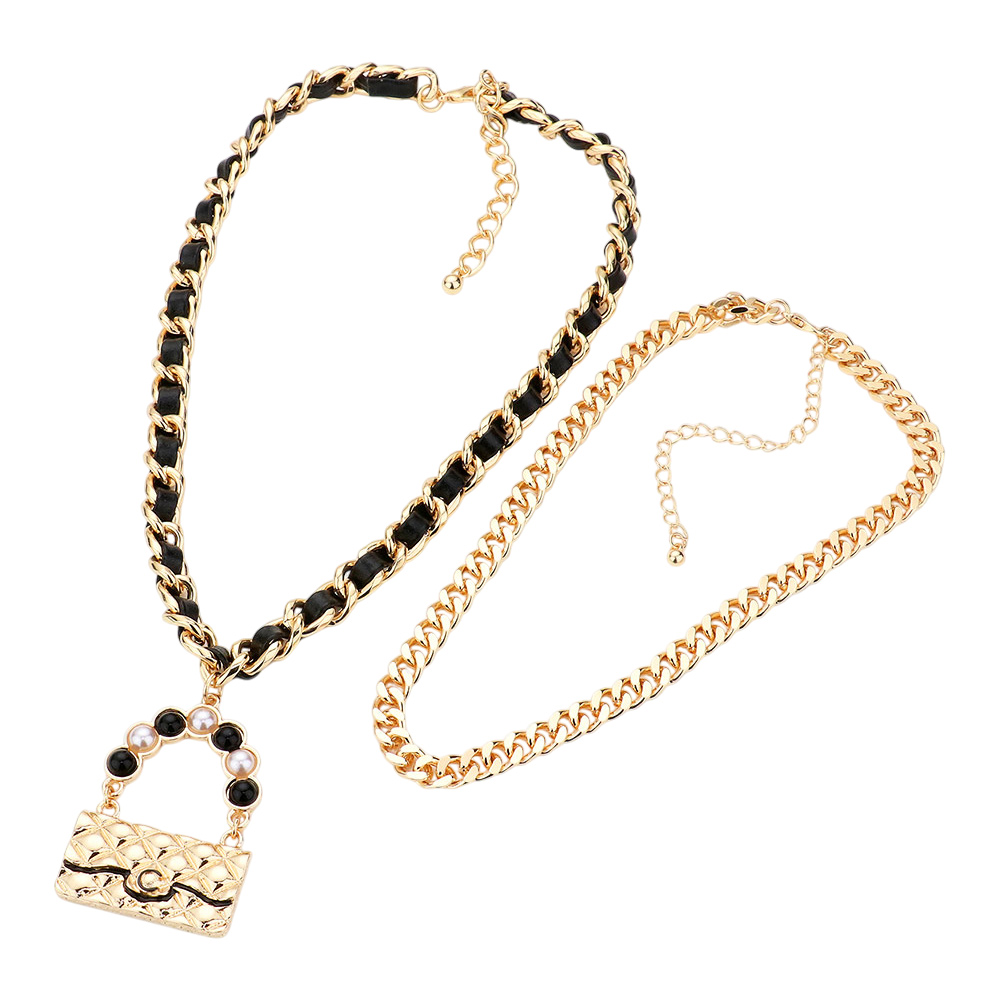 2PCS - Metal Chain Pearl Embellished Bag Pendant Necklaces