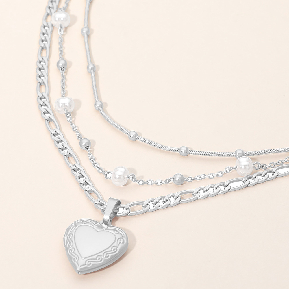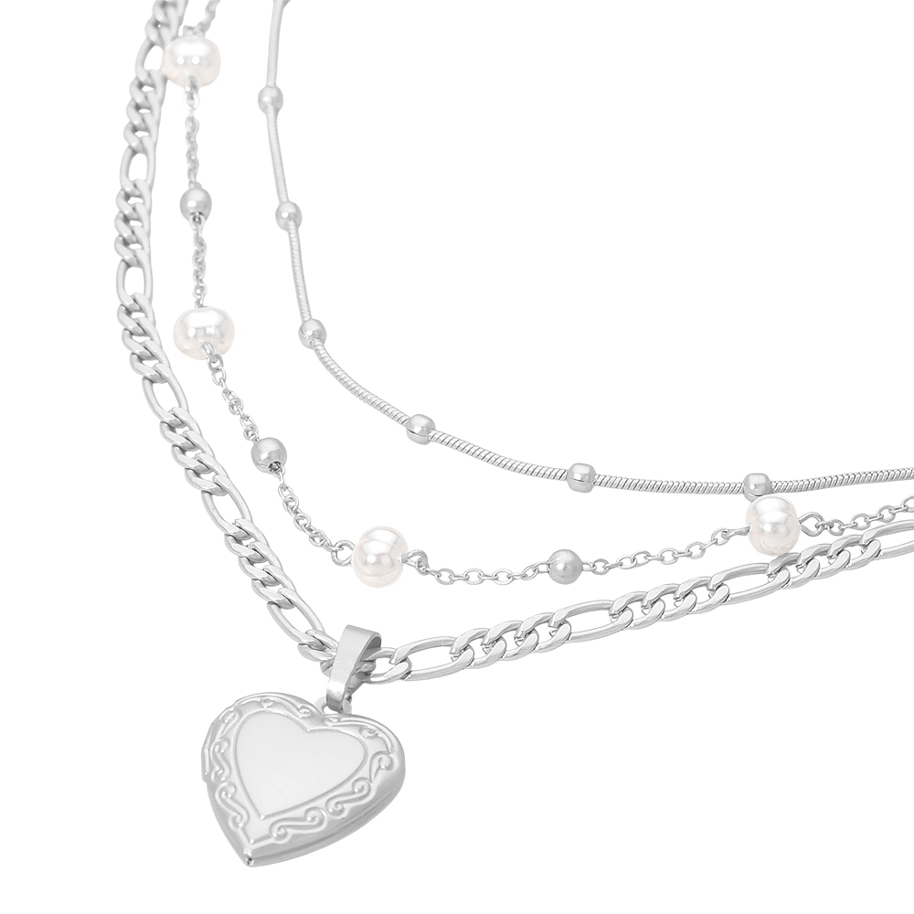 3PCS - Heart Locket Pendant Pearl Station Bead Chain Layered Necklaces 3PCS - Heart Locket Pendant Pearl Station Bead Chain Layered Necklaces 3PCS - Heart Locket Pendant Pearl Station Bead Chain Layered Necklaces